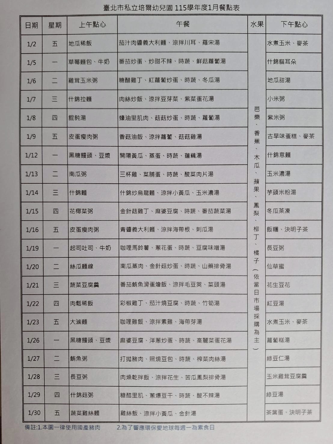 本月餐點表下載